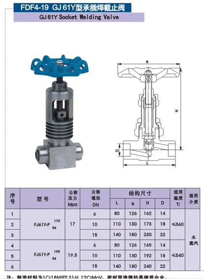 GJ61Y型承插焊截止閥