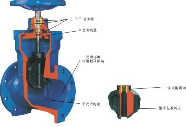 暗桿彈性座封閘閥,零用閥門整體包膠產(chǎn)生變形補(bǔ)償作用達(dá)到良好的密封效果,克服了一般閘閥密封不良、漏水和生銹的現(xiàn)象,更有效的節(jié)約安裝空間。 可廣泛用于自來(lái)水、污水、建筑、石油、化工、食品、輕紡、電力、船舶、治金、能源系統(tǒng)等流體管線上作為調(diào)節(jié)和截流裝置使用。本軟密封閘閥采用無(wú)凹腔結(jié)構(gòu),閥體閥蓋內(nèi)外表面噴涂環(huán)氧樹(shù)脂,閘板表面包覆橡膠,這樣從根本上杜絕了腐蝕發(fā)生的可能性,閥桿密封處舍棄填料而采用“O”形密封圈,使得蜜蜂更加可靠。根據(jù)需要,本閘閥可以采用操作桿、手輪、電動(dòng)及氣動(dòng)等方式操作。